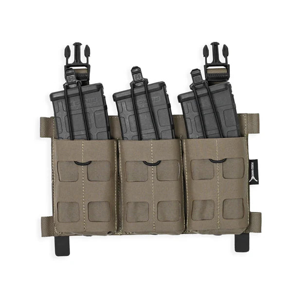 The RTF is a QASM buckle & G- Hook compatible plug in triple mag placard that is available in both 5.56 & 308 versions. It is compatible with our LPSPC V2 plate carrier as well as any other carrier on the market that is optimized for velcro placards and either QASM buckles or G- Hooks.