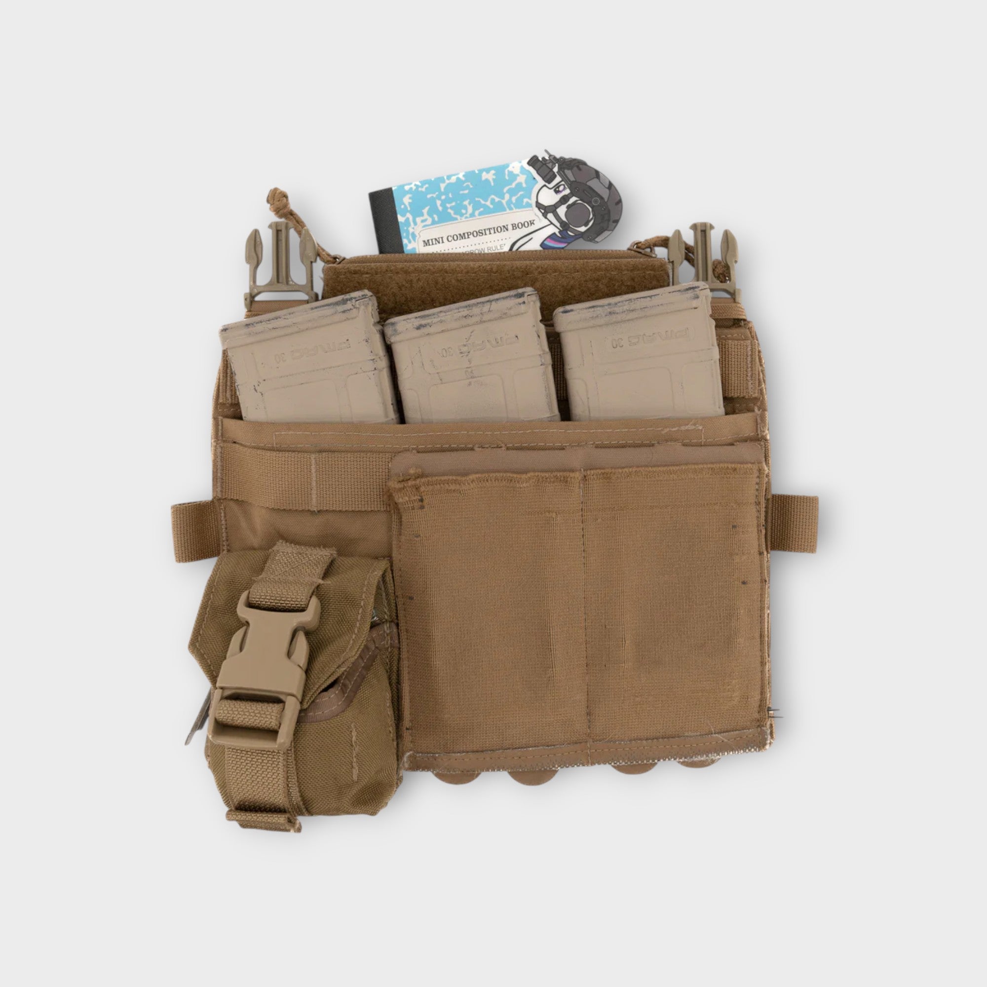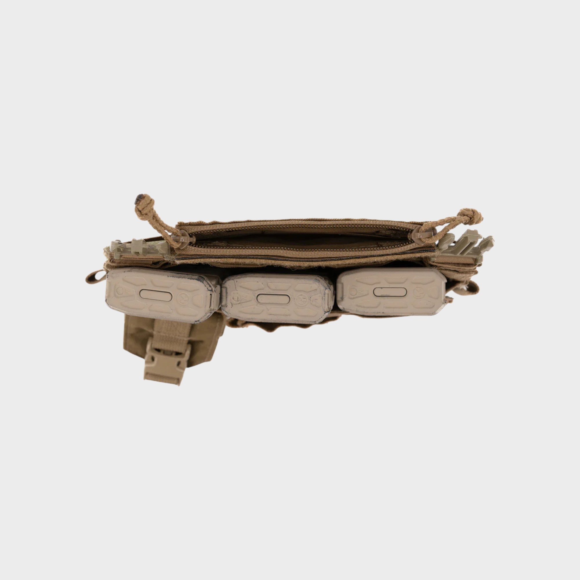 The AXL Advanced Sandwich Bag is a near-universal, low-profile solution to add admin pouch capability behind industry-standard SwiftClip and G-Hook placards. It is designed to give users access to the contents while not inhibiting rifle magazines or EUDs mounted above. The Sandwich Bag attaches between the two side release buckles used on carriers and placard adapters. When empty, it adds no additional bulk to the front of your carrier.