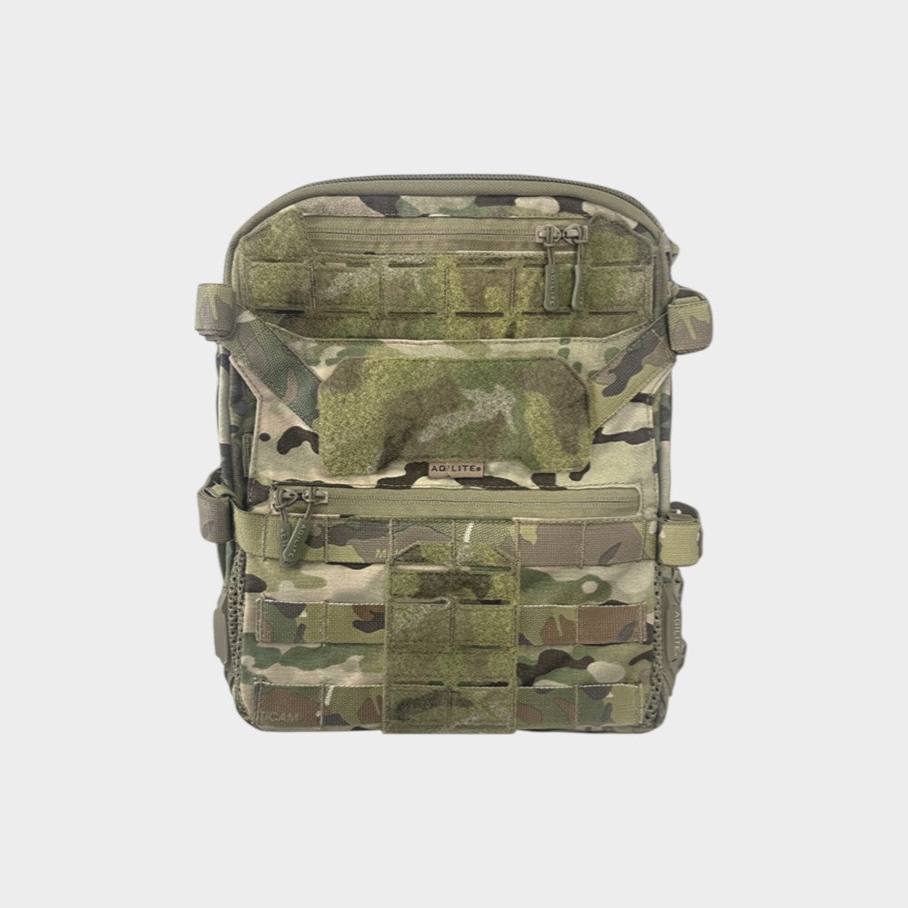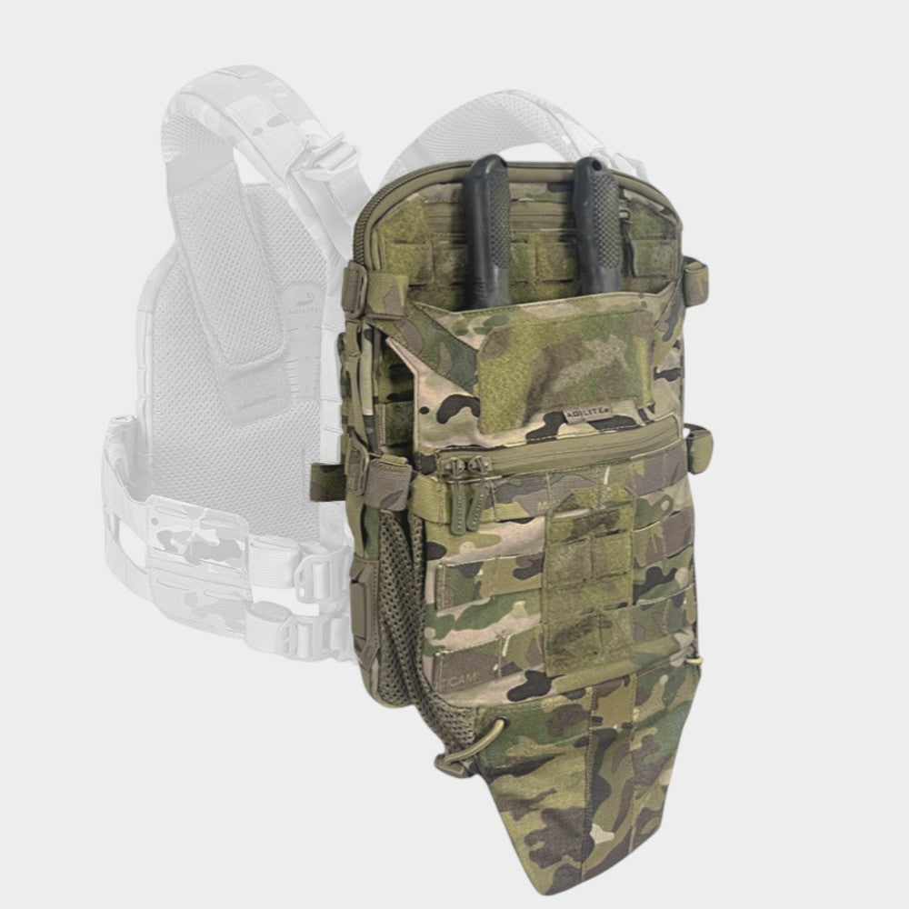 The Agilite Gear Micro MAP (Modular Assault Panel) is a modular back panel that can be attached to plate carriers using the MOLLE system, providing versatile carrying capacities without being overly bulky. It is designed to fit the Agilite Gear 3-liter hydration bladder and can also accommodate a helmet and breaching tools. Developed for units engaged in quick and short operations in urban environments where agility and snug-fitting equipment are essential, the Agilite Gear Micro MAP fills the gap between hydration pouches and breacher panels without sacrificing key features and modularity.