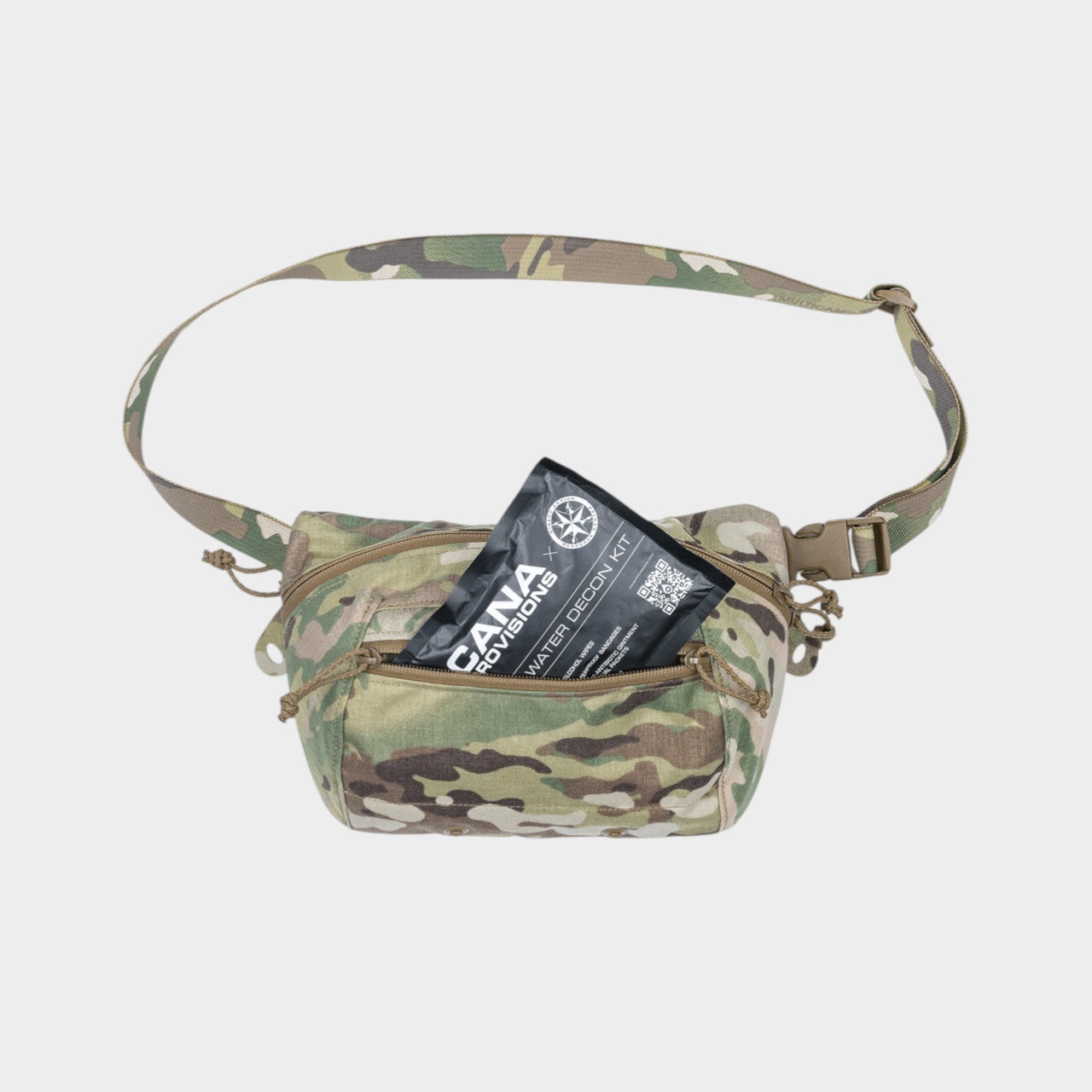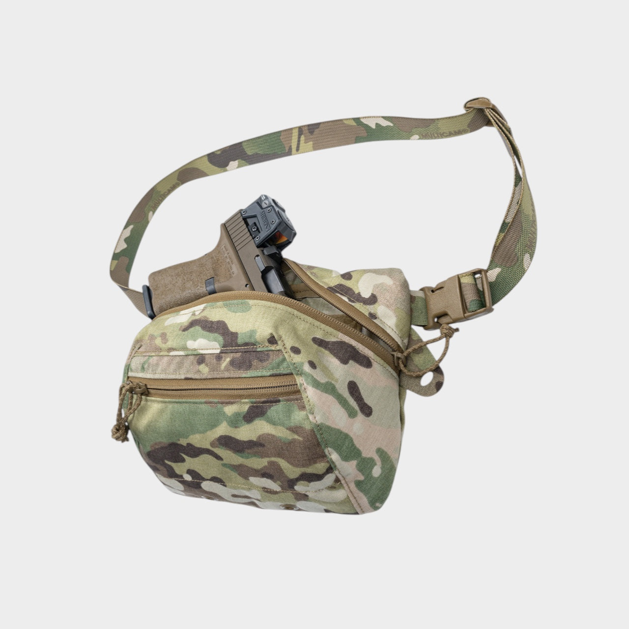 While similar in purpose to its predecessor (Fanny SACK Mk3) it has been updated and expanded to accommodate larger frame pistols like Glock 17's, small frame Staccato 2011's, as well as handguns with optics and lights.