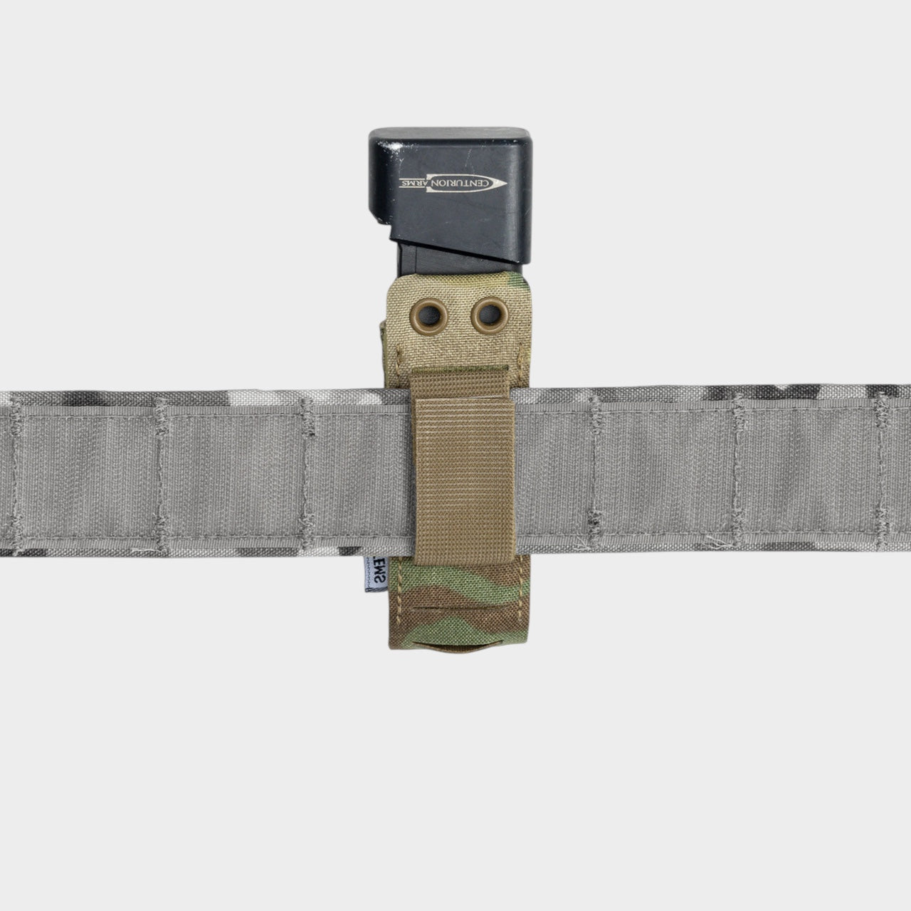 - The pouch comes with two hook and loop straps that enable the pouch to be mounted on a variety of belt widths, ranging from thin concealed carry belts, all the way up to 2” two-piece fighting belts.
