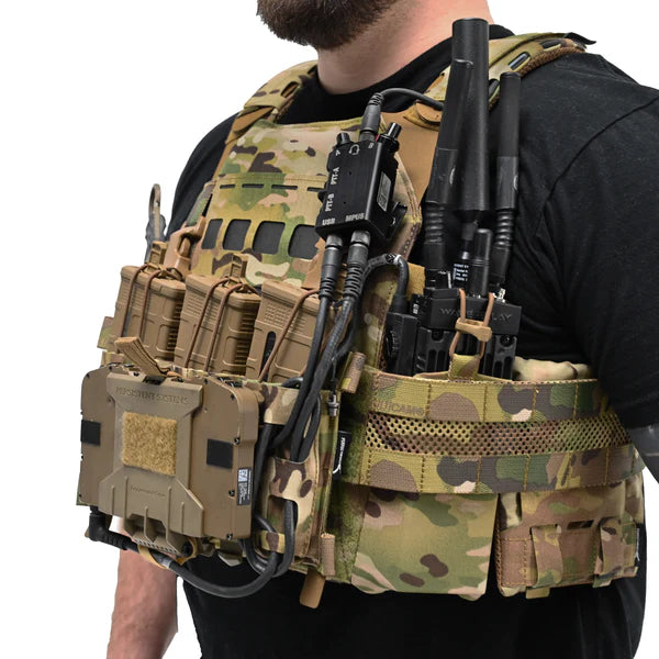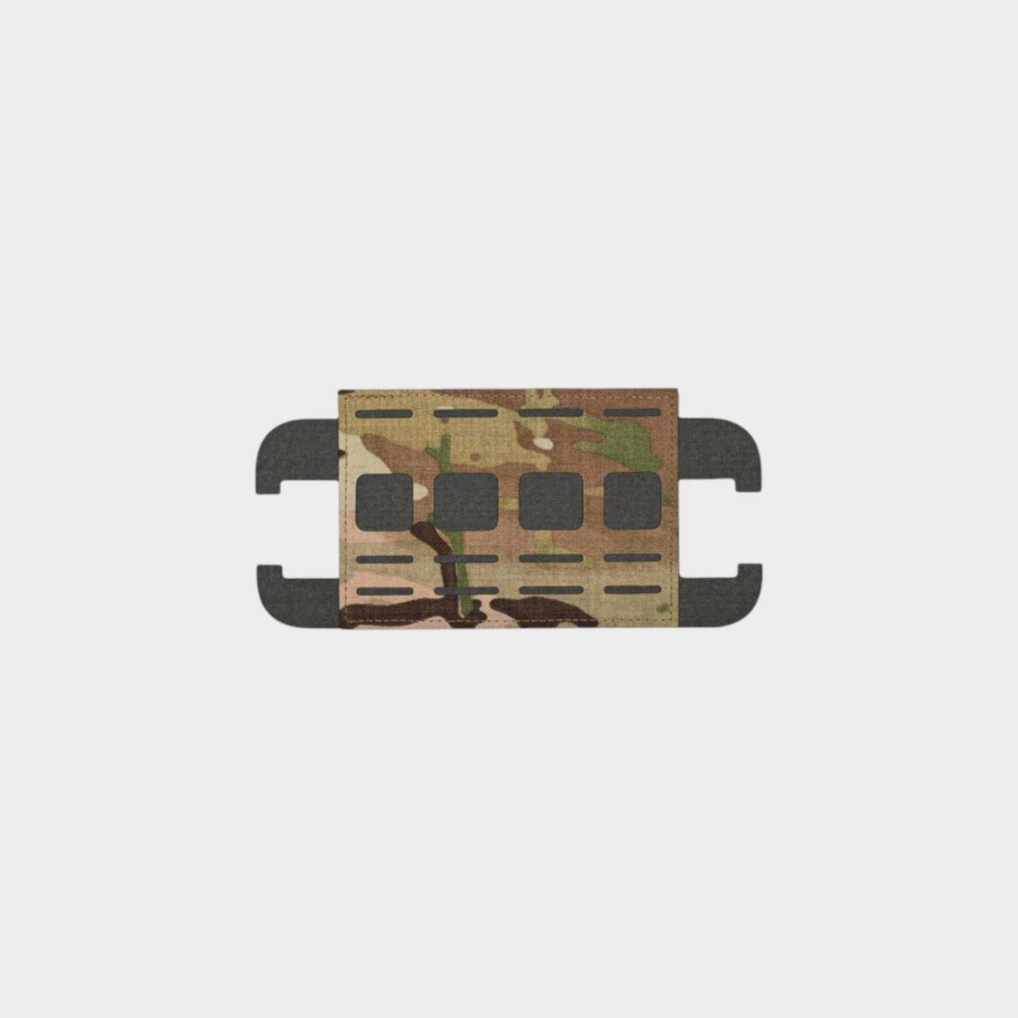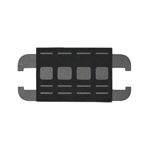 Made of Curve thermoplastic. Two rows of laser cut 1 in MOLLE is compatible with all standard mil spec MOLLE pouches and accessories. Hook Velcro backed and held stable with round tabs, which slide into the vertical webbing of the LPSPC.